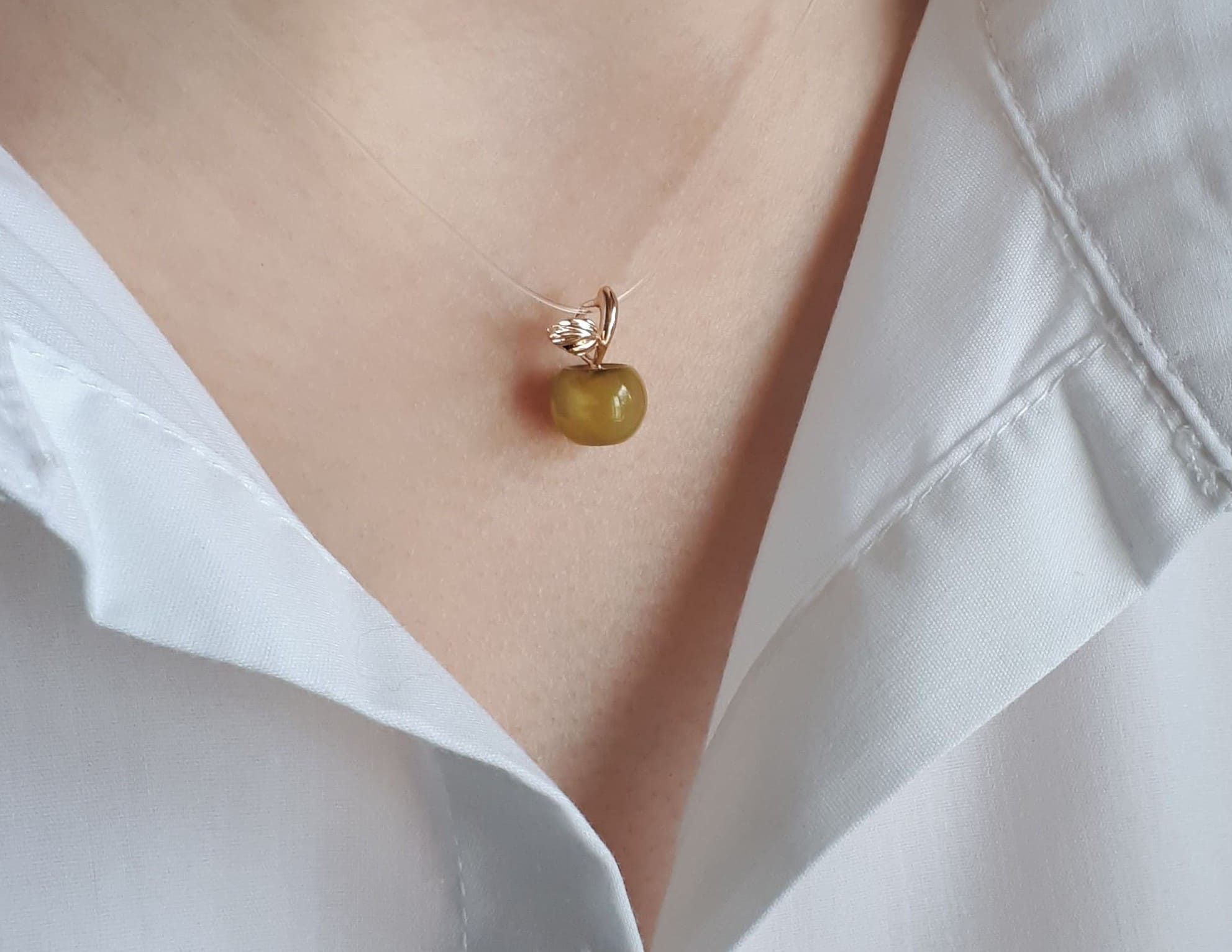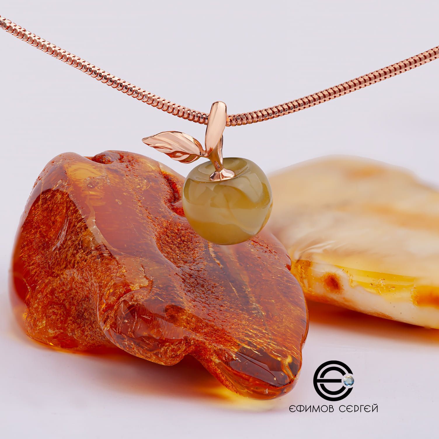 Украшение на шею продается без цепочки, напрямую от производителя, доступной цене. Мастер работает под собственным брендом и создает неповторимые украшения из золота и серебра с натуральными камнями. В коллекции «Яблоко» с «солнечными камнями» представлено три варианта подвесок: «Медовое яблочко» - красное золото 585 и желто-молочный янтарь, «Наливное яблочко» - красное золото 585 и красный янтарь, «Молодое яблочко» - красное золото 585 и янтарь редкого зеленого оттенка Янтарь – амулет, созданный природой
