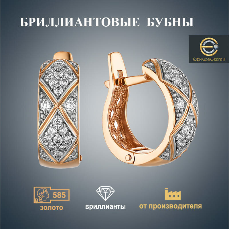 Роскошные золотые серьги "Бриллиантовые бубны" - это настоящее воплощение элегантности и блеска.