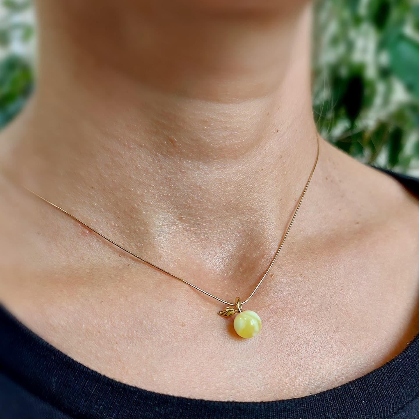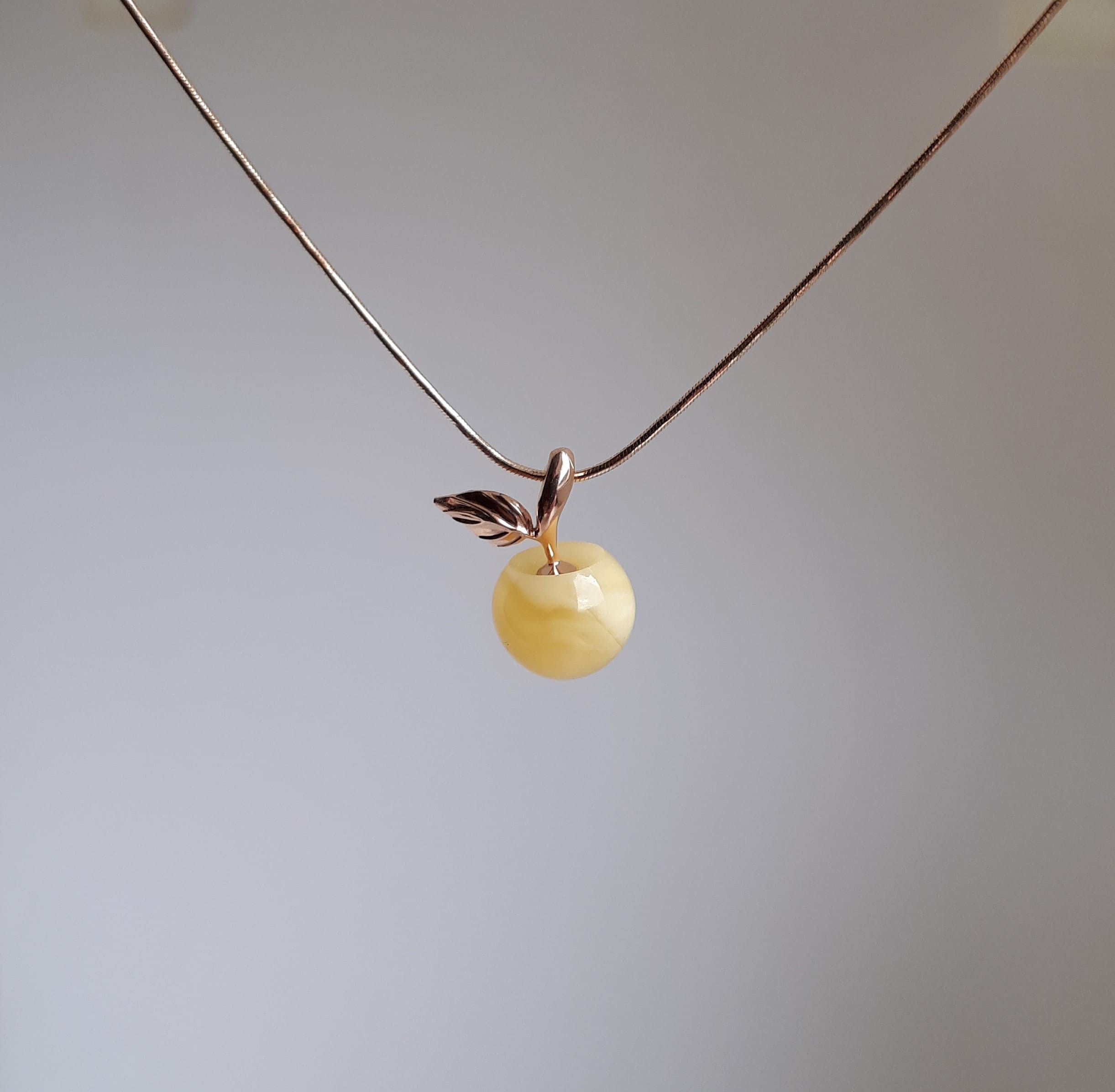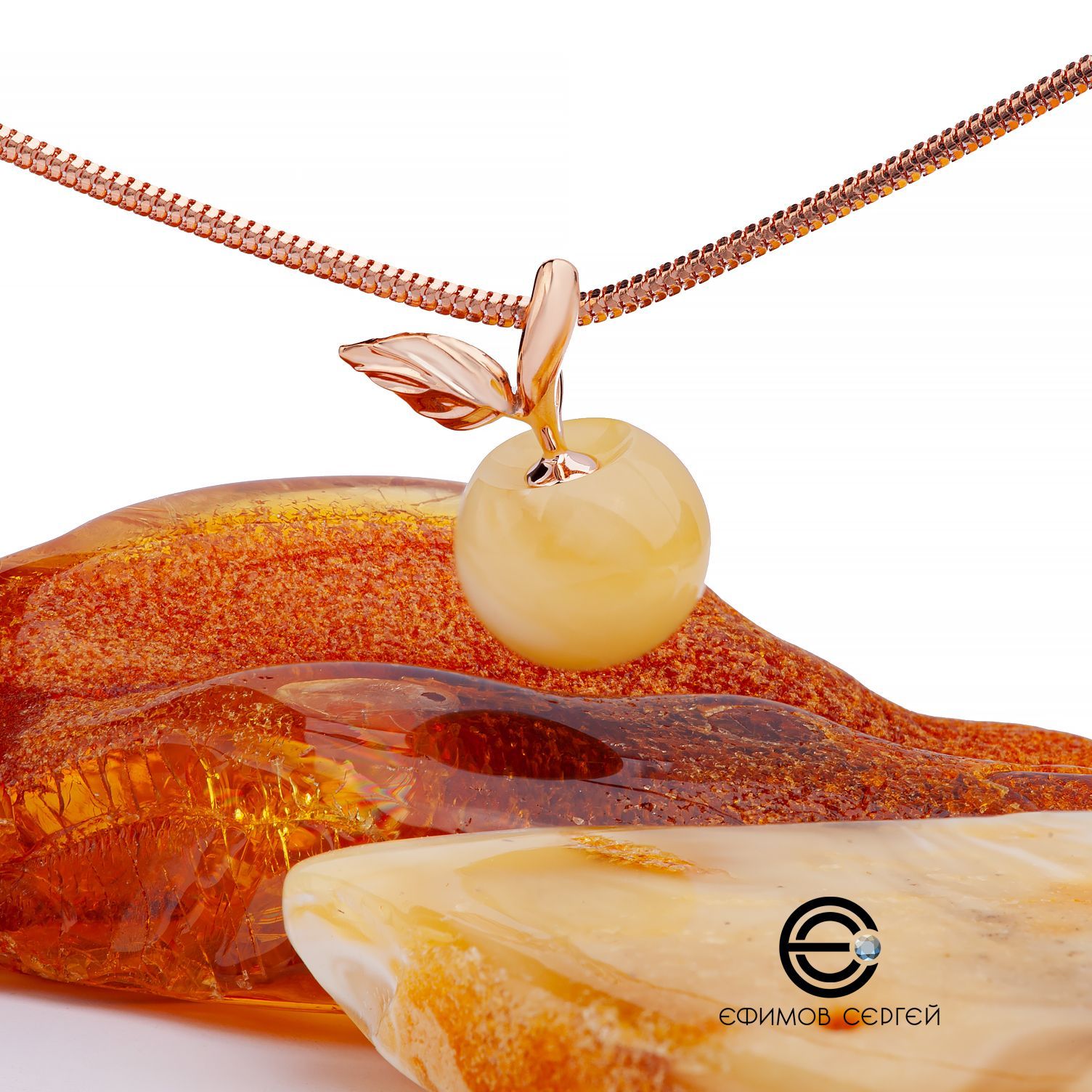 Подвеска «Медовое яблочко» из красного золота 585 пробы с натуральным природным цельным – янтарем.