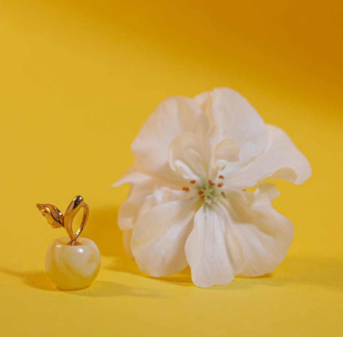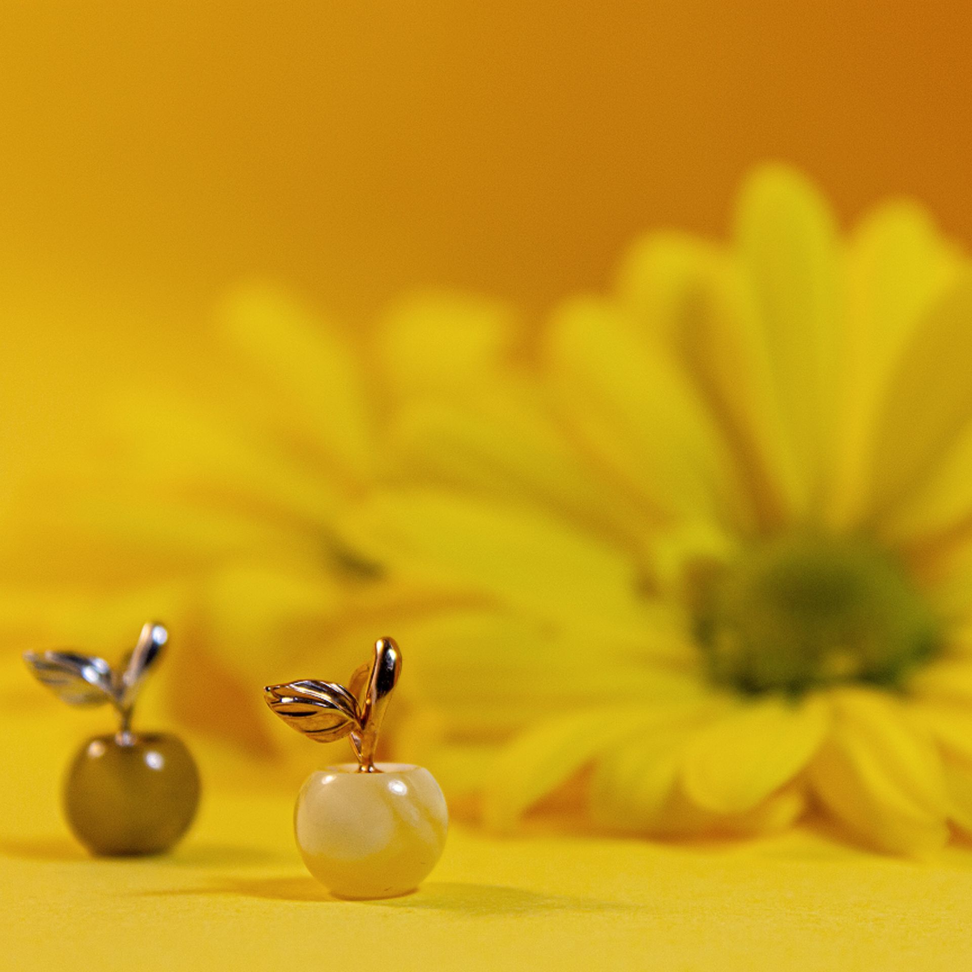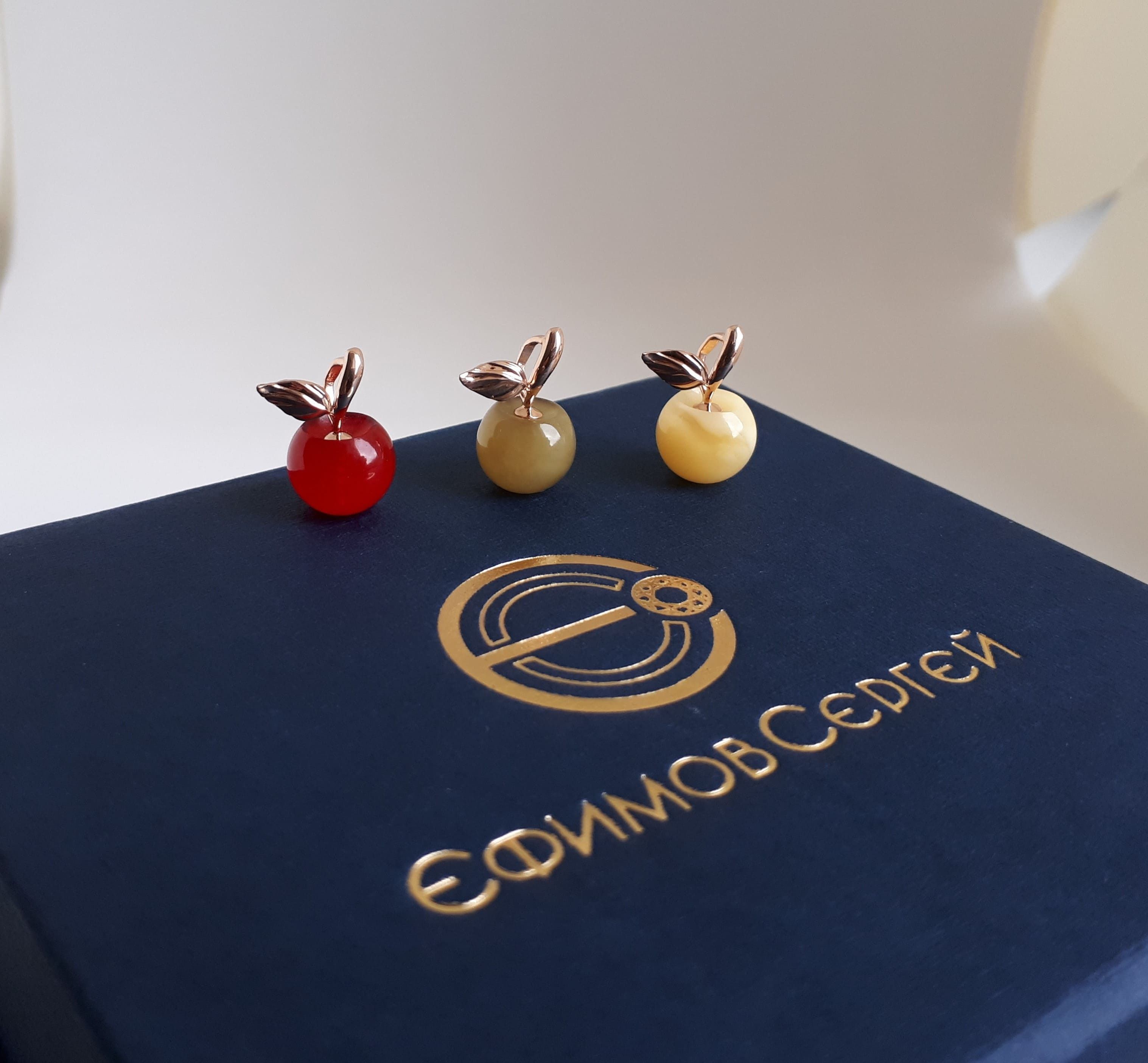 Подвеска «Медовое яблочко» из красного золота 585 пробы с натуральным природным цельным – янтарем.