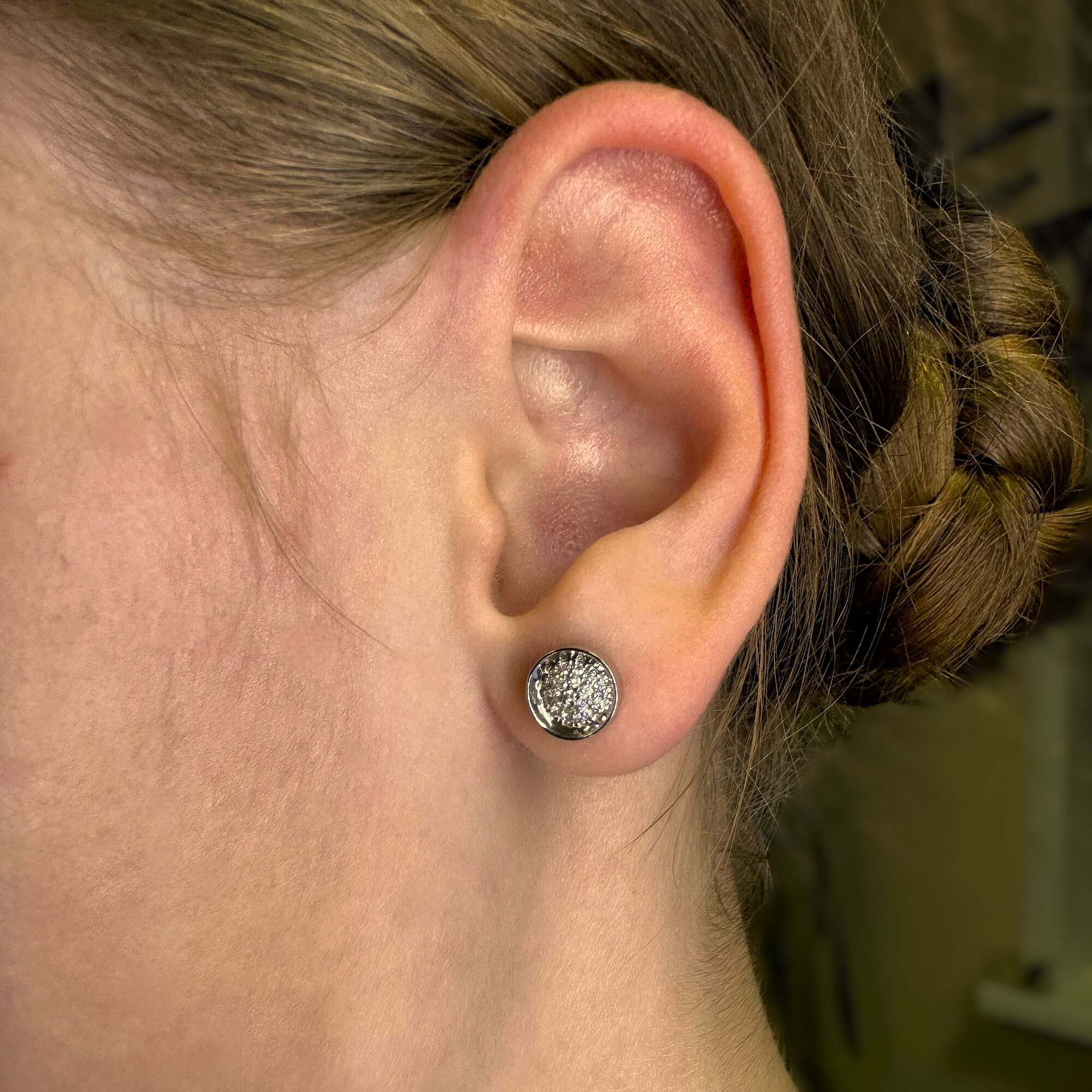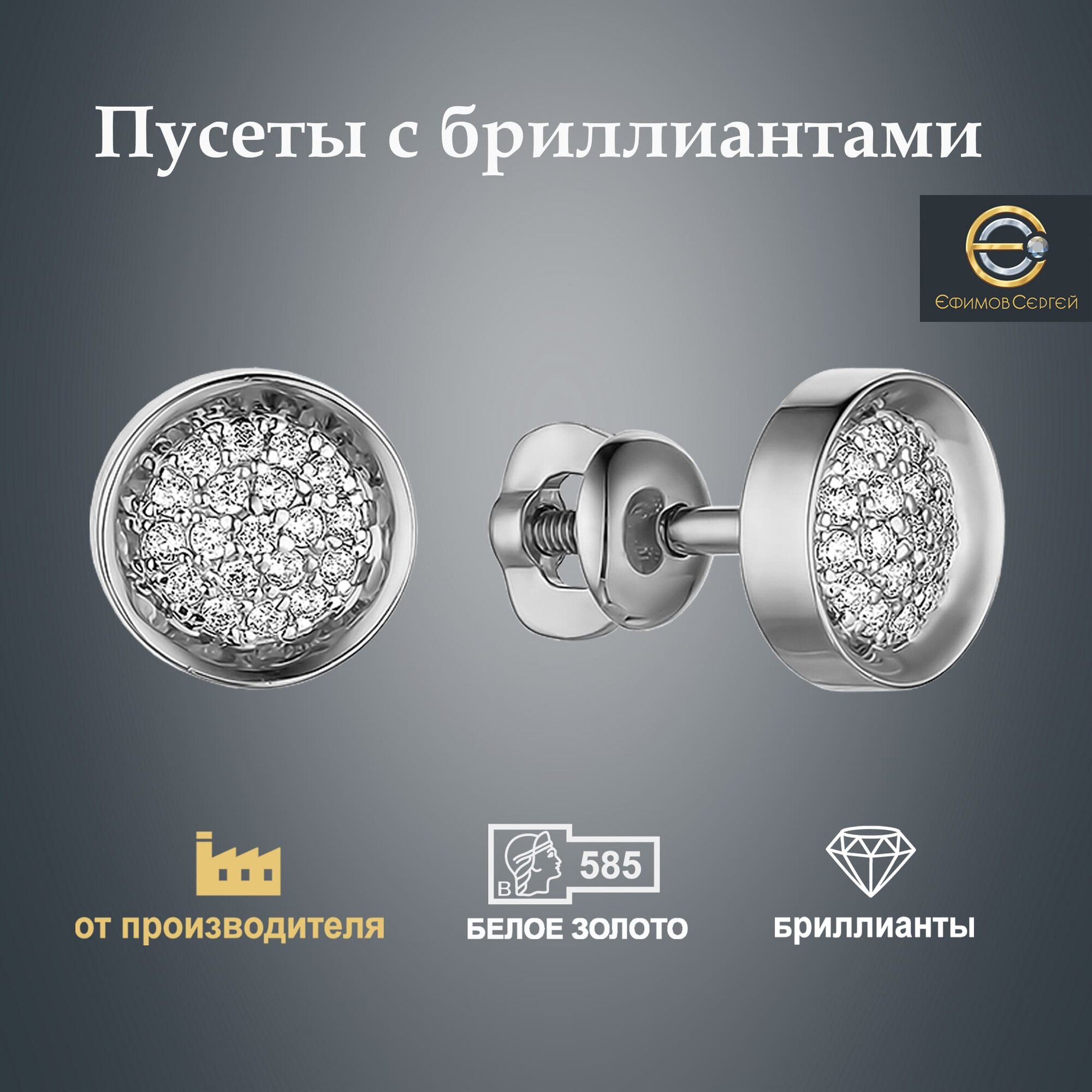 Стильные пусеты из белого золота 585 пробы дополнены натуральными бриллиантами, создающими эффект свежести и элегантности. Круглый дизайн идеально сочетается с любым образом, будь то повседневный или торжественный.