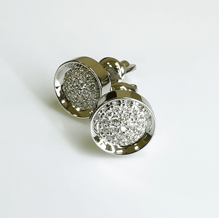 В изделиях закреплены натуральные бриллианты в количестве 38 шт. с высоким качеством огранки 57 граней, чистотой 3/5 А и общим весом 0,15 Ct. Средний вес серег - 2,2 г. Украшения продаются напрямую от производителя.