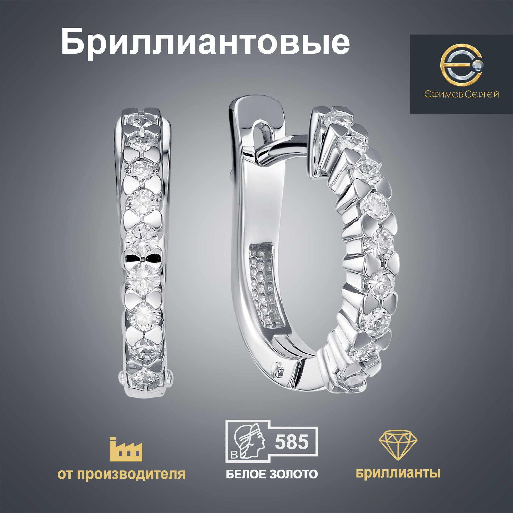 Серьги из белого золота 585 пробы с натуральными природными бриллиантами. В изделиях закреплены натуральные бриллианты в количестве 18 шт., с высоким качеством огранки 57 граней, чистотой 3/6 А и общим весом 0,27 Ct. Средний вес серег - 2,40 г. На изделии нанесены - именник производителя, подтверждающая проба металла Федеральной пробирной палаты и физическая маркировка в виде QR кода. Золотые украшения с бриллиантами продаются напрямую от производителя. Изделия изготовлены мастером-ювелиром Сергеем Ефимовым. Мастер работает под собственным Российским брендом и создает неповторимые украшения из золота и серебра с натуральными камнями. Эти серьги с бриллиантами подойдут для девушек и женщин любого возраста. Яркий блеск бриллиантов обязательно обратит взоры окружающих на обладательницу такого великолепного украшения, эти серьги станут одними из любимых, принесут счастье, мир и любовь.