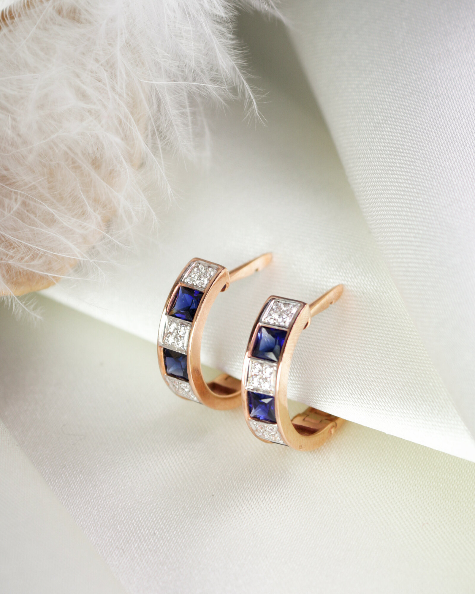 Изысканные золотые серьги с бриллиантами и сапфирами - это истинное воплощение роскоши и элегантности. Блеск драгоценных камней делают это украшение по-настоящему впечатляющим. Бриллианты придают серьгам неповторимое сияние, а сапфиры добавляют им загадочности и утонченности.